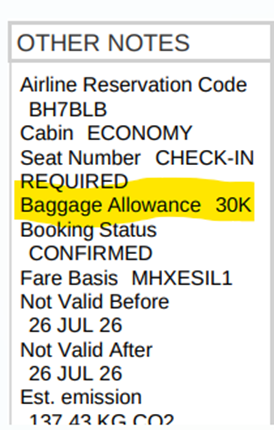 באתר חברת התעופה: מספר ההזמנה בחברת התעופה , ה-PNR (6 תווים) באתר החברה המפעילה תחת "ניהול הזמנה" כדי לראות את המכסה המדויקת שלכם