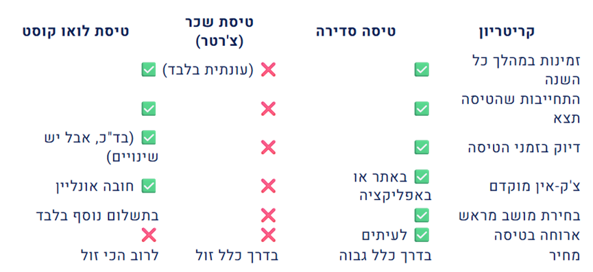 *כל תוספת בתשלום: מושב, תיק גדול, מזוודה, אוכל, עדיפות בעלייה ועוד